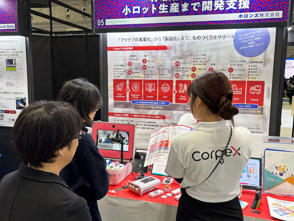 ホロンズ株式会社は、2025年11月19日~21日に開催された「EdgeTech+2025」に出展し、参画している開発支援協同事業体『Corpex(コルペックス)』の、「アイデアの事業化」から「製品化」までワンストップで支援する取組みについて展示を行いました。